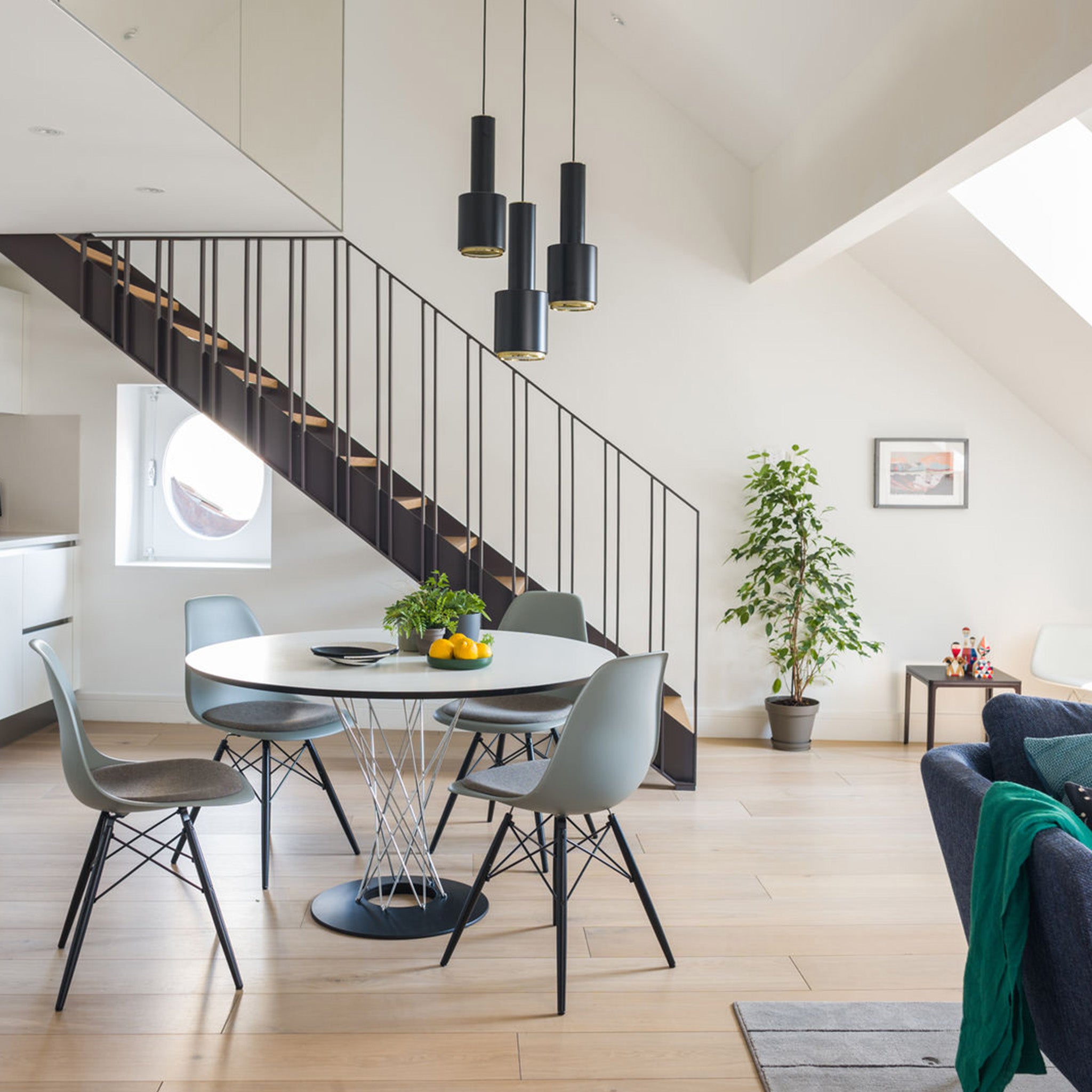Noguchi Dining Table by the artist and designer Isamu Noguchi is one of the most elegant dining tables in the history of twentieth-century design. The rods connect to a cast iron base ring to securely support the table and provide stability.