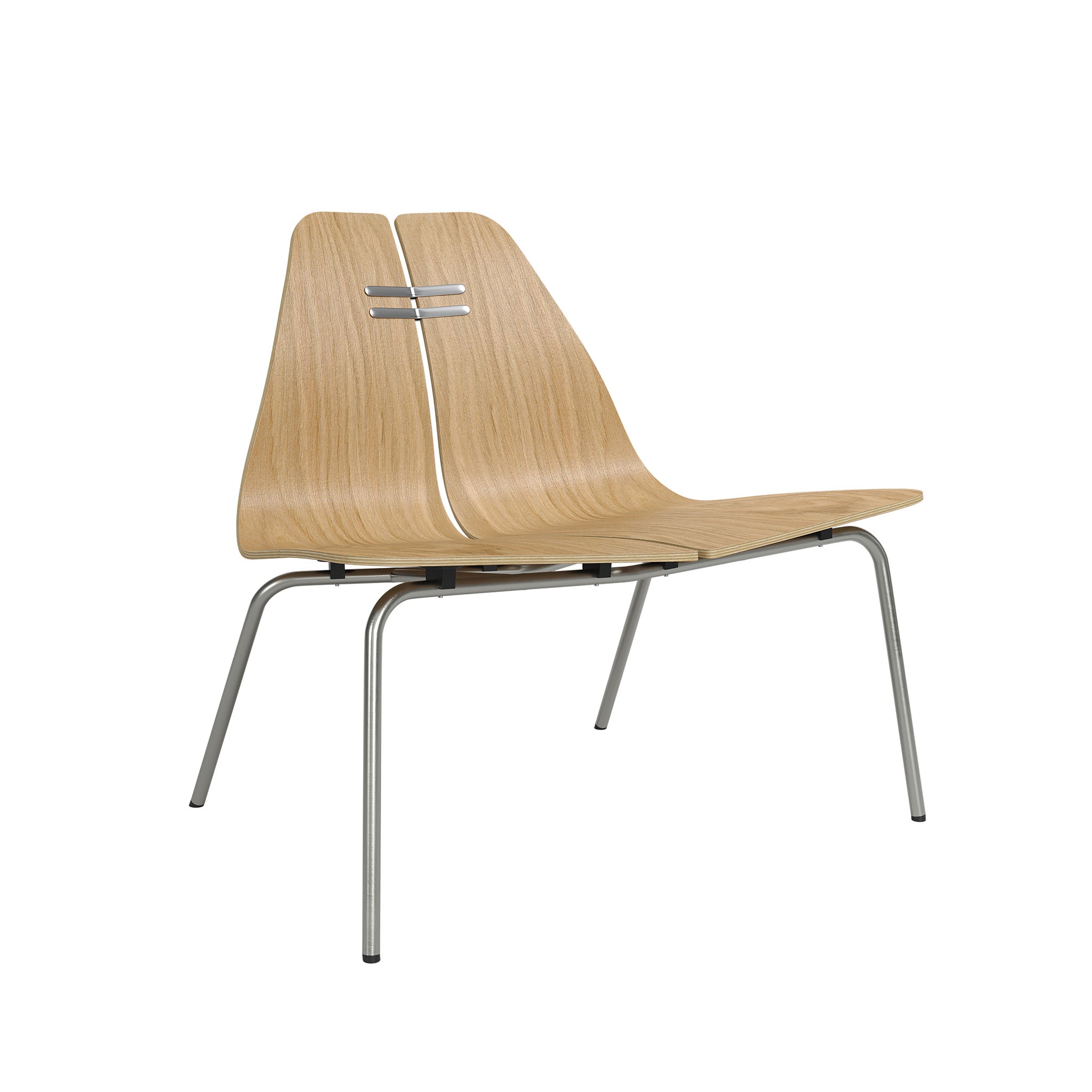The PK23™ chair's laminated veneer shells for the seat and back come in 3 varieties: black-painted ash veneer, walnut veneer or oak veneer. A double bracket connector detail elegantly bridges the backrest divide. The chair's base comes in stainless steel for all shell material types or a black powder-coated steel base for the black-painted ash version only.